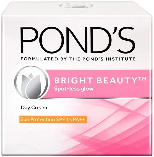In today’s harsh sun, even just 10 minutes outside can lead to stubborn dark spots. Presenting pond’s bright beauty, a revolutionary anti-spot solution bought to you by the pond’s institute. It’s anti-spot formula with pro-vitamin b3 is clinically proven to fade stubborn dark spots from within. Pro-vitamin b3 is a potent skin brightening agent proven to reduce stubborn dark spots from within to reveal beautiful and spot-less skin from outside. It brightens skin and dark spots by inhibiting the transfer of melanin to the surface of the skin revealing a clear and translucent spot-less complexion. It now comes with spf15 formula which blocks dark spot-causing harmful UV a, UV b sun rays. Take pearl sized amount of pond’s bright beauty day cream onto your fingers. Apply a few dots of cream on your dark spots first, followed by rest of forehead, nose, both sides of cheek, chin and either side of neck. Massage evenly so that cream spreads equally and penetrates deep into your skin, especially dark spots. Do this every day to see your spot-less bright skin with a difference. Fades stubborn dark spots, gives you spot-less brightness - pond’s bright beauty day cream. For best results, use daily along with pond's bright beauty face wash.